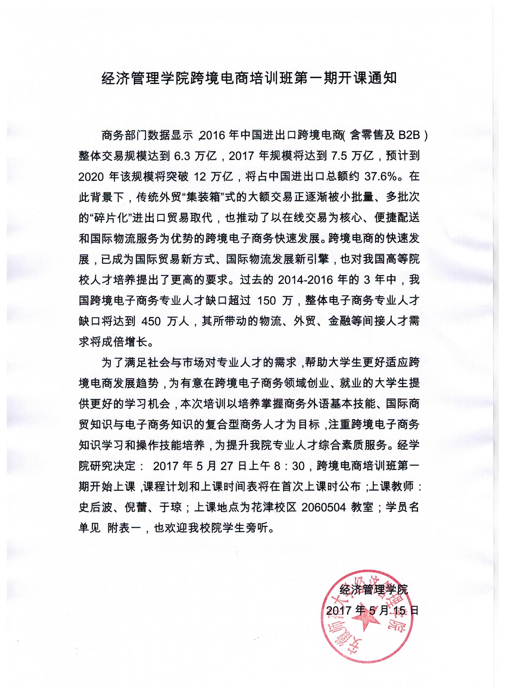 m88官网跨境电商培训班第一期开课通知