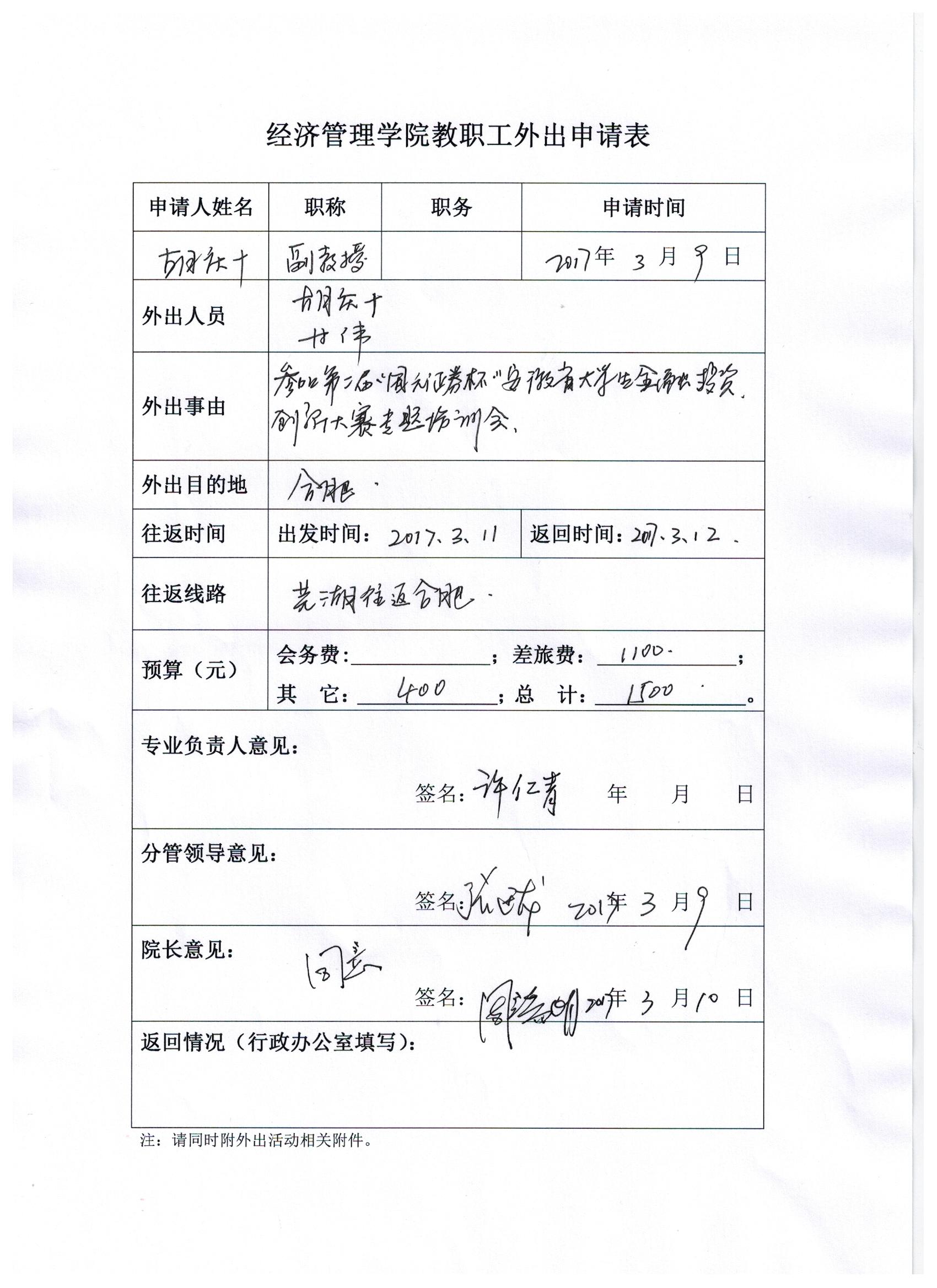 胡庆十、甘伟老师外出公示