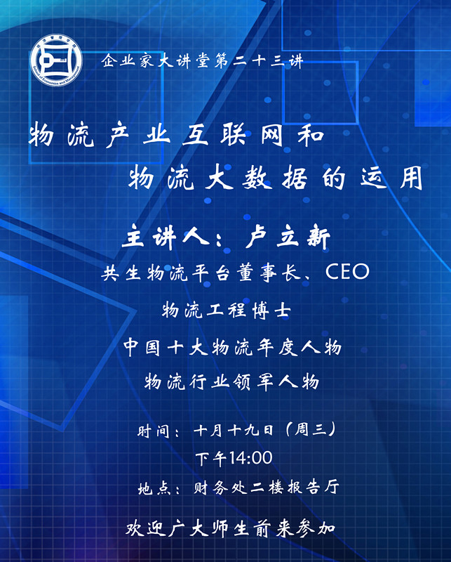 企业家大讲堂第二十三讲:物流产业互联网和物流大数据的运用