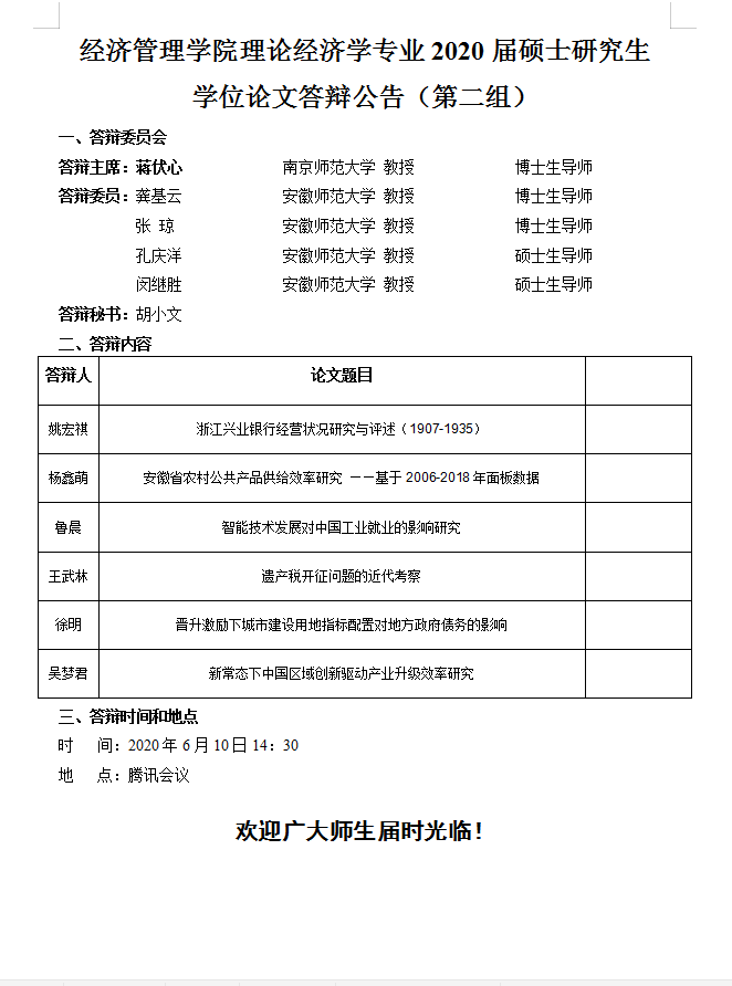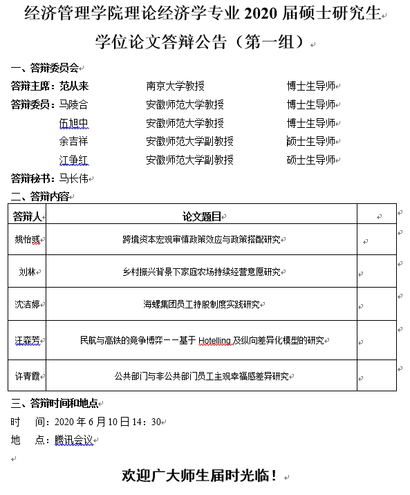 m88官网2020届硕士研究生学位论文答辩公告-理论经济学