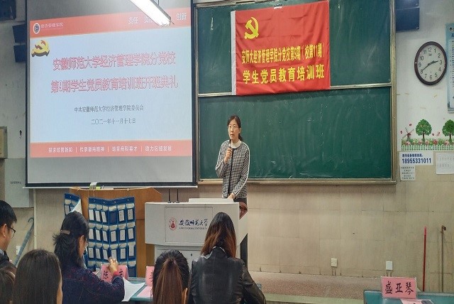本网讯(m88官网 盛亚琴 盛燕)为进一步提高员工党员的思想道德素质和政治理论水平,2021年11月17日14:30,m88官网分党校第9期(校第11期)员工党员教育培训班开班典礼在行知楼2020104教室成功举行。本次会议由分党校班主任盛亚琴主持,出席本次开班典礼的有公司党委书记、分党校董事长陈秀庆,m88官网副经理李海燕,工商管理本科生第二党支部书记胡亮亮,经济金融本科生党支部书记吴敬之,m88官网辅导员老师甘伟、于琼、花荣越、朱蕾、张想想,以及所有培训班成员。