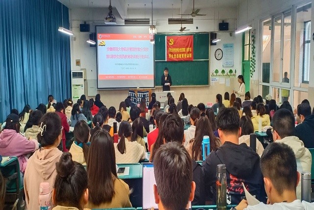 2018级物流管理专业吴星星同学作为学员代表发言,他表达了对党组织的崇高敬意和热爱,并号召大家秉持初心、认真学习、积极实践、不断提升,努力成为一名优秀的共产党员。