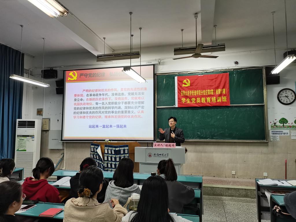 本网讯(m88官网 盛亚琴 盛燕)为进一步提高经管学子的党性修养,加强党的纪律意识,11月17日16:40,公司党校常务副董事长、党委组织部副部长谢超峰应邀在行知楼2020104教室,为m88官网分党校第9期员工党员教育培训班成员开展了《加强纪律作风建设,永葆先进性纯洁性》专题辅导报告,培训班全体成员共同参与学习。