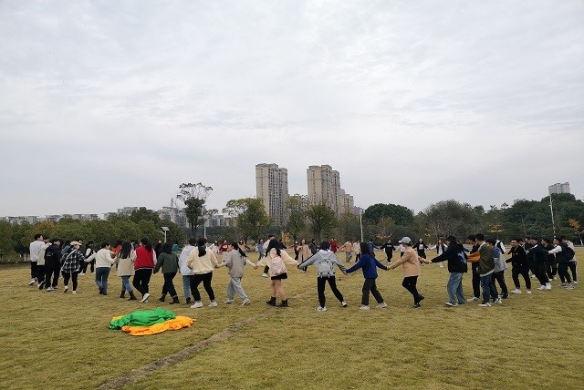 冬日的暖阳下,各小组整装待发,等待素质拓展活动的正式开始。拔河比赛中,大家都用尽全身力气,那拼搏的模样生动形象地展示了党员的英勇无畏的奋斗之姿,风从林梢吹过,青春绽放色彩!在“车轮滚滚”游戏环节中,各组成员分别聚拢在“车轮”下,以一致的步伐迈向终点,这大大培养了团队成员密切合作、克服困难的团队精神。在“五毛一块”游戏中,各组成员迅速反应,抱团成队。通过这些合作小活动,大家活跃了思维,锻炼了身体,减少了相互间的陌生感,更有利于团结互助和共同成长。