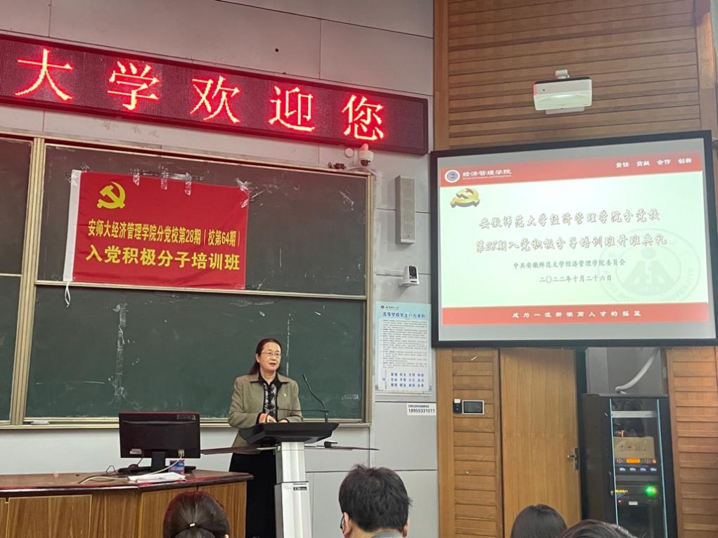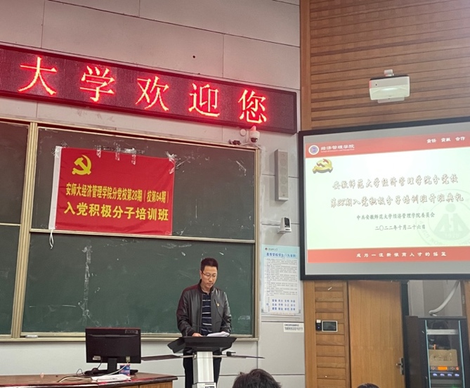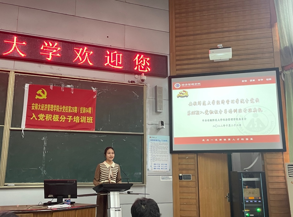 为进一步做好入党积极分子的教育培训工作,提高入党积极分子的思想道德水平和政治理论水平,2022年10月26日,m88官网分党校第28期入党积极分子培训班开班典礼在行知楼2010105教室成功举行。公司党委书记、分党校董事长陈秀庆,公司党委副书记、分党校副董事长陈刚锋,公司组织员兼党委秘书彭树燕,会计学本科生党支部书记胡亮亮,物流金融本科生党支部书记吴敬之,经济人管本科生党支部书记吕洋,经济金融工管研究生党支部书记陈龙,会计专硕研究生党支部书记钱京钰,m88官网辅导员老师朱蕾、张想想,以及m88官网第28期入党积极分子培训班全体成员参加了此次典礼。本次开班典礼由分党校班主任盛亚琴主持。