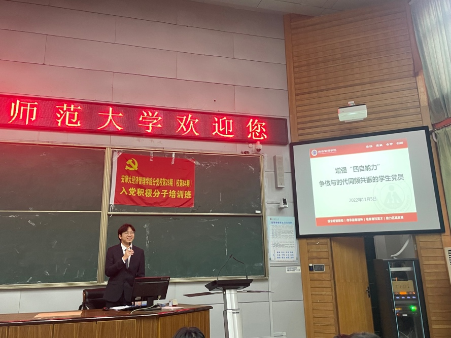 韦魏围绕着“四自能力”,从自我净化、自我完善、自我革新以及自我提高四个方面展开论述。首先简要讲述了自己如何从一名入党积极分子转变成为一名光荣的共产党员的历程,为培训班的成员提供了一个良好的示范。接着从“在坚定信念中自我净化、在锻造改革中自我完善、在善于学习中自我革新以及在勇于实践中自我提高”四个方面解读“四自能力”,其中大量穿插自身经历和经验,给学员很大的帮助和启发。最后带领培训班公司学习了两个视频,让大家切实感悟到了当代青年人应有的使命和担当。