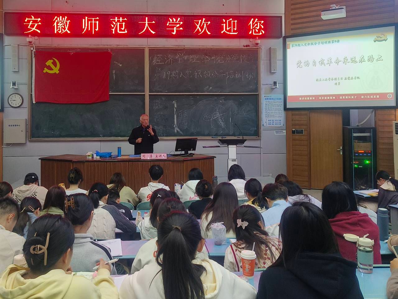 10月18日-10月21日,培训班邀请党校常务副董事长、党委组织部副部长余妍霞,院关工委副主任刘勇,公司党委书记乔静,马克思主义公司副教授张鑫等开展《解读中国共产党章程》《党的自我革命永远在路上》《思想入党与组织入党》《改天换地——三大战争与新中国成立》《习近平经济思想专题》《发展党员的程序和手续》等专题辅导报告。