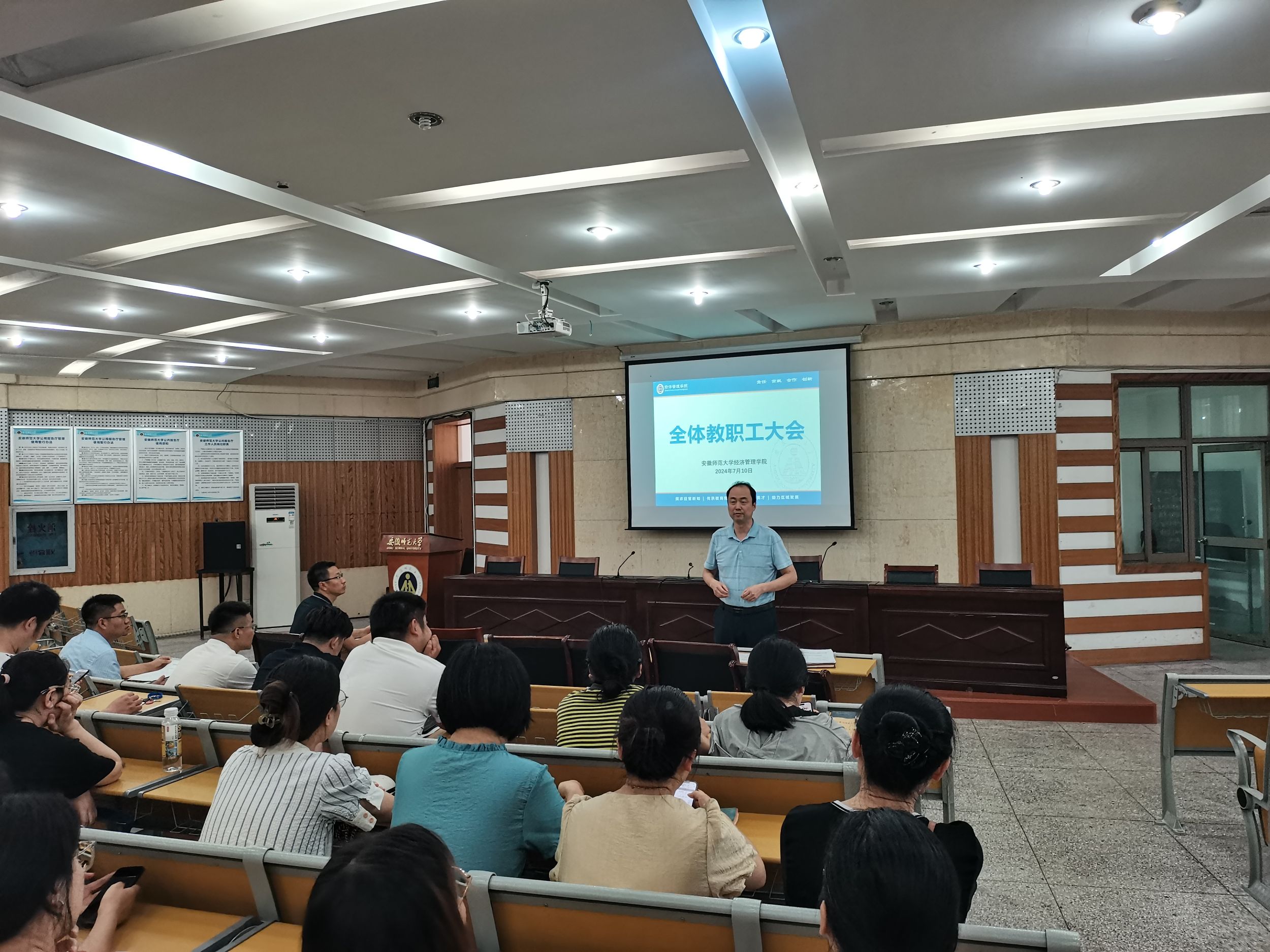 受经理张廷龙委托,财会教工党支部书记、会计专业负责人徐飞专题部署了公司暑期本科公司产品审核评估工作推进工作安排。他首先通报了课堂教学质量建设情况及本科教育审核评估工作进展,并结合PPT详细介绍了本科公司产品审核评估背景、前一阶段工作成效、存在的问题及暑期评估材料准备、时间安排和下一阶段重点工作。